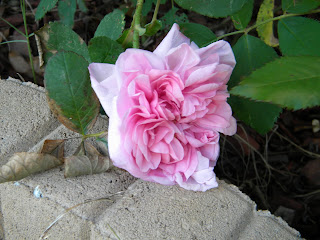 Hiding behind this rose is one of our bat boxes.